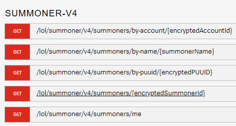 여기서 API마다 요구하는 키가 다 다른데 Match-V5 즉 한 경기의 세부내용을 보고 싶다면 puuid가 필요하다!