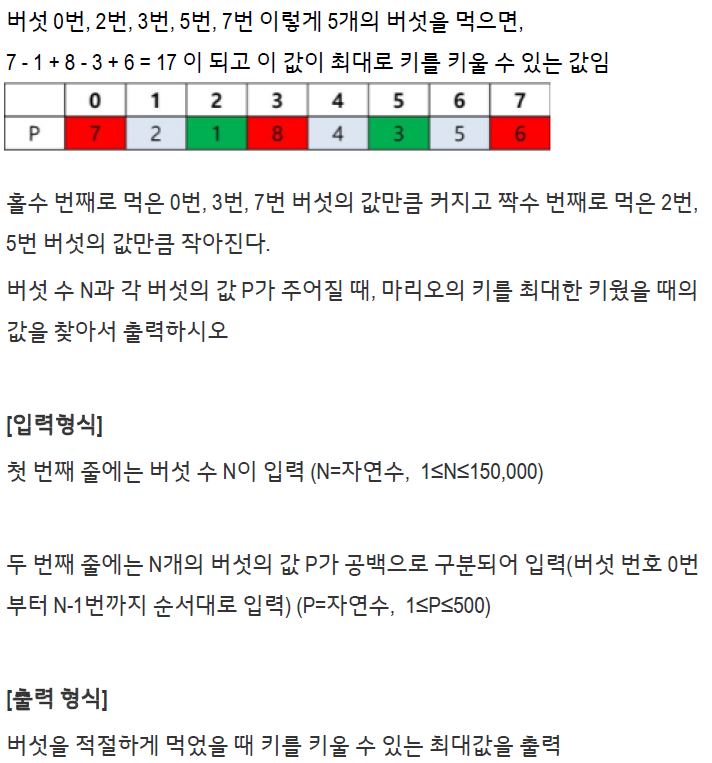 4. 즉, 홀수번째로먹은버섯의숫자만큼커지고짝수번째로먹은숫자만큼작아짐