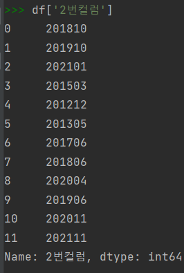 두번째로 2번컬럼이 년,월,일로 정해져있는데 년,월으로만 표기하고 싶을 때는 100으로 나눠서 몫만 보면되는데 전체 데이터프레임을 적용할 때 코딩 초보자는 for문을 사용해야하나 while문을 사용해나 싶다. 내가 그랬다.
