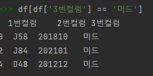df[df['3번컬럼'] == '미드']