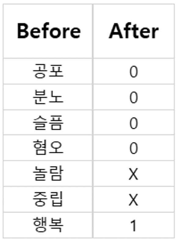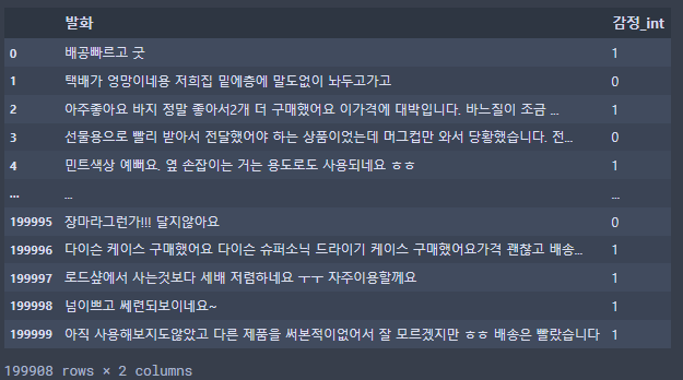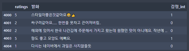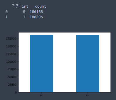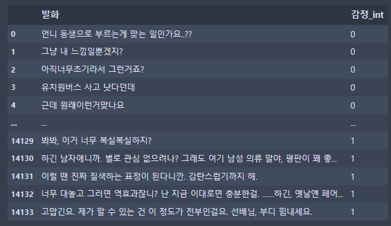 이렇게 분류해서 감정_int라는 행으로 추가해주었다.