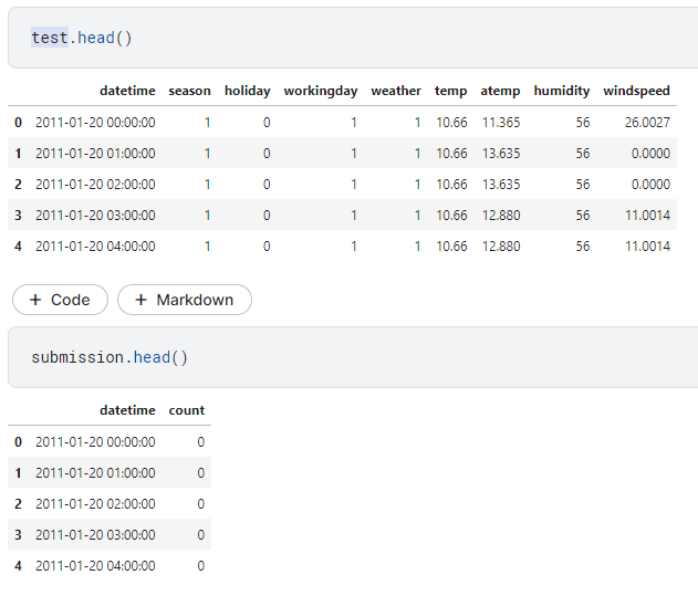 train data를 보았으니 test data와 제출데이터는 어떻게 생겼는지 한번 보고 넘어가야 방향을 잡을 수 있다.