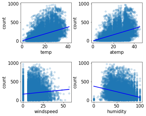 sns.regplot(x='temp', y='count', data=train, ax=axes[0, 0],