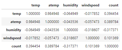 train[['temp','atemp','humidity','windspeed','count']].corr()