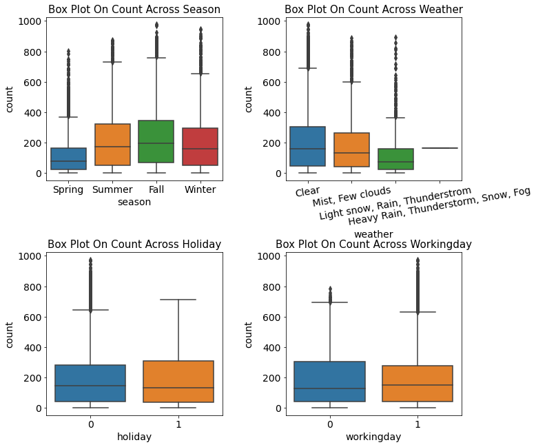 axes[0, 1].set(title='Box Plot On Count Across Weather')