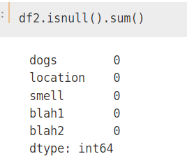 columns = ['dogs','location','smell','blah1','blah2'])