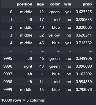 df['win'] = np.random.choice(["yes", 'no'], size)